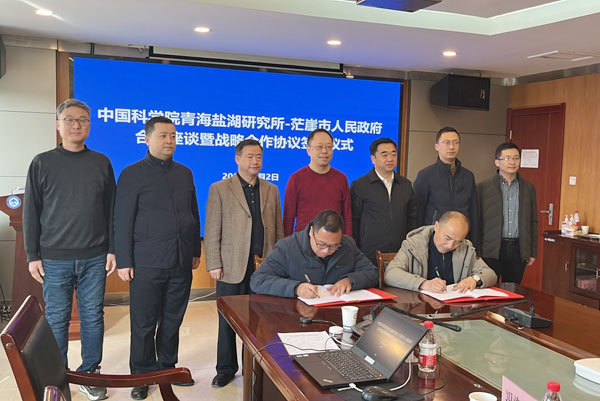 2月2日,青海盐湖所与茫崖市人民政府开展合作座谈并签订战略合作协议。青海盐湖所所长吴志坚,党委书记、副所长王永晏,副所长冯海涛,茫崖市委副书记、市长刘为民,副市长于家绩出席会议。