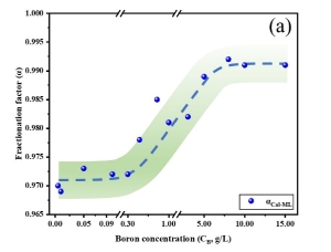 该研究成果近日以Influence of polyborate ions on the fractionation of B isotopes during calcite deposition为题在线发表在Chemical Geology(IF=4.685)。论文第一署名单位为青海盐湖所,马云麒研究员为通讯作者,在读博士研究生顾焕恩为论文第一作者。该成果得到了国家自然科学基金面上项目(No.41473117)和中国科学院功能开发技术创新项目(2018gz012)共同资助。