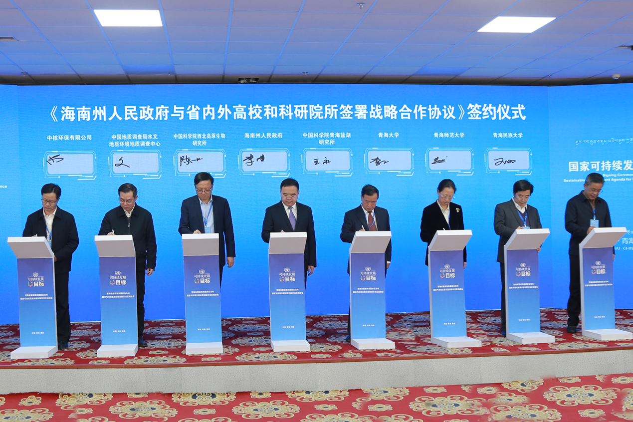 在签约仪式上,王永晏代表青海盐湖所与海南州人民政府签订“海南藏族自治州人民政府中科院青海盐湖研究所 建设国家可持续发展议程创新示范区战略合作协议”。将根据《国务院关于同意海南藏族自治州建设国家可持续发展议程创新示范区的批复》(国函〔2022〕72号)要求,进一步深化全方位、宽领域、多层次科技合作机制,推进青海省建设海南州国家可持续发展议程创新示范区,助力打造生态文明高地,建设产业“四地”,打造泛共和盆地绿色发展新增长极,为海南州生态保护和经济社会高质量发展提供科技支撑。
