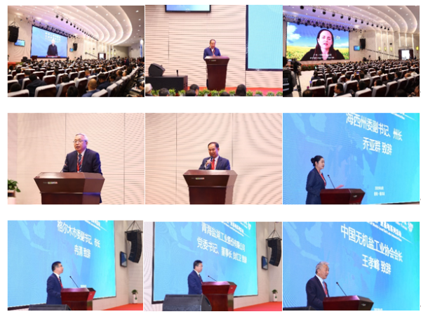 开幕式上,工业和信息化部副部长王江平、国际肥料协会IFA秘书长阿尔兹贝塔·克莱因分别以视频形式致辞,向大会的举行表示祝贺和期许。省人大常委会副主任张黄元,中国工程院院士郑绵平,中国科学院院士费维扬,中国石油和化工联合会副会长兼秘书长赵俊贵,老挝政府地质矿产司司长苏坎萨·西苏先生,海西州委副书记、州长乔亚群,海西州委副书记、格尔木市委书记汪山泉,格尔木市委副书记、市长冉清等业界专家和领导应邀出席开幕式。