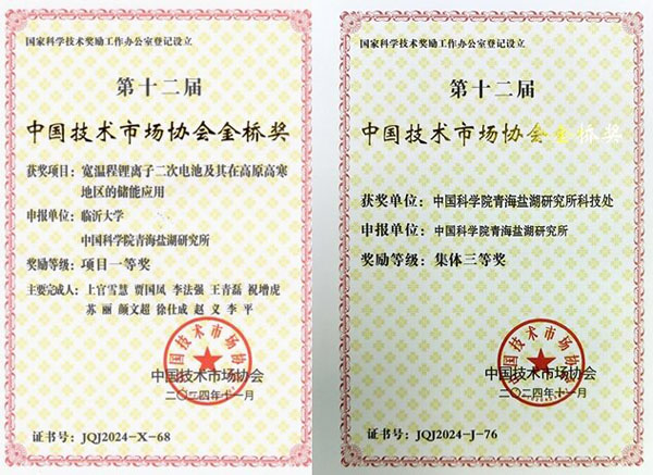 12月14日,由中国技术市场协会主办的第十二届中国技术市场协会金桥奖表彰奖励大会在北京举行,青海盐湖所获项目奖1项、集体奖1项。“宽温程锂离子二次电池及其在高原高寒地区的储能应用”项目获“项目一等奖”,科技处获“集体三等奖”。