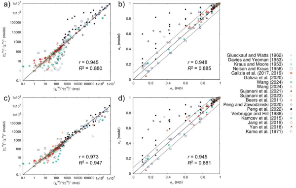 应用该理论,成功对过去70多年来实验测定的各类离子交换膜体系中离子活度系数数据进行了统一描述。研究特别强调:膜内复杂的聚合物网络作为拓扑整体对自由离子行为具有决定性作用。(式3)中的标度因子β作为表征膜聚合物整体拓扑结构的关键参数,为先进离子交换膜的设计提供了全新理论坐标。