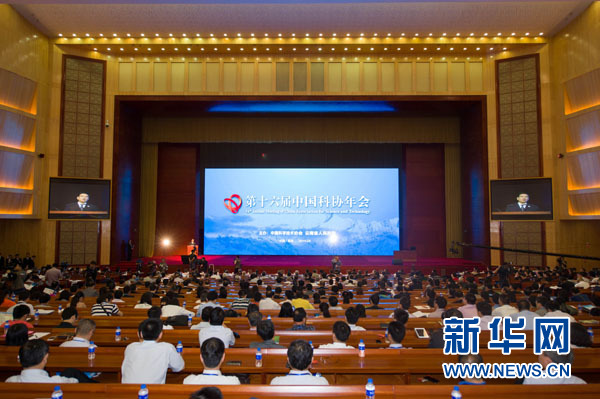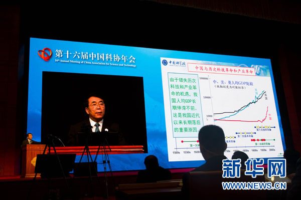 5月24日,中国科学院院长白春礼在第十六届中国科协年会上作特邀报告。中国科学院院长白春礼在当日开幕的第十六届中国科协年会上作大会特邀报告时说,回顾人类社会发展过程中经历的五次科技革命,可以得出科学先导、双轮驱动和科技强国三大启示。新华社发(胡超 摄)