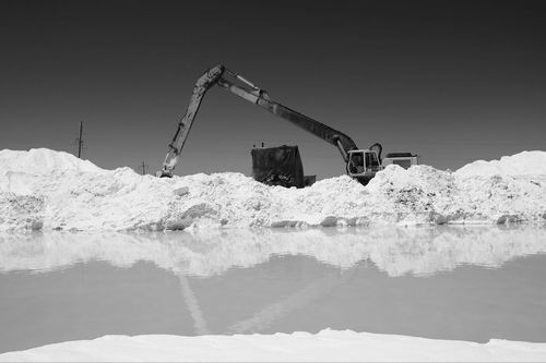 工人在盐湖中作业