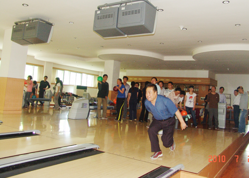 活动结束后,全体成员分组参加了保龄球比赛、游泳比赛、参观玉皇阁、乘快艇游黄河等活动。在温泉宾馆保龄球活动室,大家换上专业保龄球鞋,做完热身运动后,活动在欢声笑语中拉开了帷幕。虽然很多人是第一次接触保龄球,但在专业人士的悉心指导下,在自身的努力下,成绩仍然突飞猛进。大家均按照保龄球的规则,交替掷球,有的因为“失误”而顿足捶胸,有的因为“幸运”而“洋洋得意”,赛场上笑声、掌声、加油声此起彼伏。在宾馆另一侧的游泳池里,大家身着各色泳装,沉浸在初学者的紧张与兴奋中。蛙泳、仰泳、自由泳,动作虽不完全到位,但一招一式也表现的有模有样,炎炎夏日,游泳不仅给大家带来了难得的清凉,更带来了温泉的滋润,活动临近结束,大家仍乐此不彼。