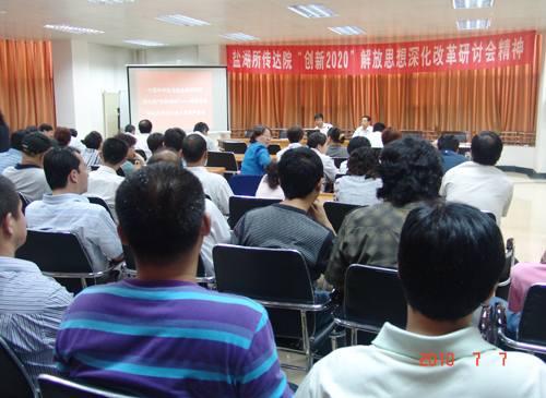 7月7日下午,青海盐湖所召开全体职工大会,专题传达学习了中科院“创新2020”---解放思想深化改革研讨会有关会议精神,并结合当前形势和院会议精神,针对科研工作实际,对研究所下半年的重点工作进行了部署。会议由党委书记胡彦明主持。