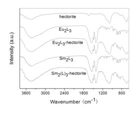 Eu2L3-Hectorite、Sm2L3-Hectorite复合材料红外光谱图