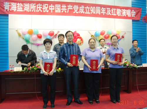 梁青生副所长首先宣读了《关于青海盐湖所纪念建党90周年表彰先进党支部、优秀党员的决定》,表彰了重点实验室党支部、研究生党支部两个先进党支部和郭敏、云山等二十二名优秀共产党员。希望受表彰的先进集体和个人要珍惜荣誉,戒骄戒躁,继续发扬求真务实、勇于创新的精神,积极探索加强党的建设、推进创先争优的新理念、新观点、新方法,进一步做好科研、支撑、管理和服务工作。希望全体党员干部、广大职工认真学习他们的先进事迹和经验,不断保持和发扬共产党的先进性,充分发挥党员先锋模范作用,为推动中科院“创新2020 ”和青海盐湖所“十二五”规划顺利实施做出更大的贡献。