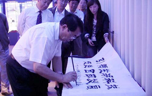 当天,白春礼在科技展厅为青海盐湖所题词:引领盐湖科技,促进西部发展。