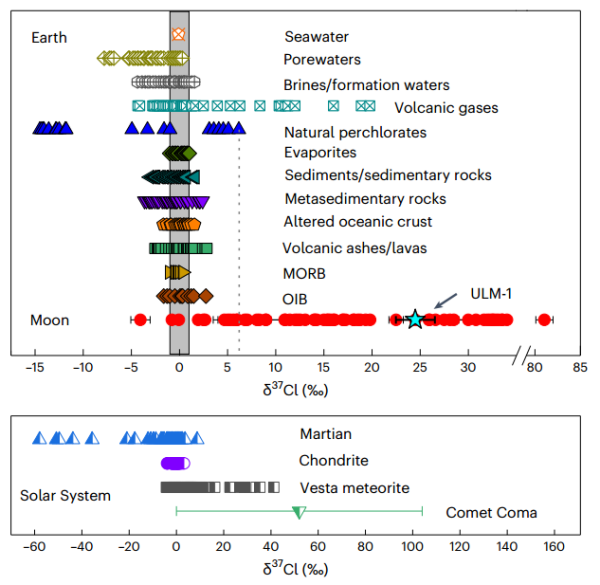 氯(Cl)同位素为行星初始挥发分元素组成和岩浆活动去气过程等提供重要依据。准确测定月壤中的Cl同位素,首先要有与其含Cl矿物一致的标准物质,该研究通过NH4Cl和MgCl2·6H2O合成了同构标准物质(NH4)MgCl3·6H2O晶体,中国科学院青海盐湖研究所采用高精度固体热电离质谱仪(TIMS,Triton)测定了 (NH4)MgCl3·6H2O标准物质中Cl同位素组成,其δ37Cl值为:+0.08±0.01‰(相对于ISL 354,SMOC),其标准值用来校正月壤样品中的基质效应和Nano-SIMS仪器测定Cl同位素造成的质量分馏,从而为准确测定月壤ULM-1样品中Cl同位素奠定了基础。