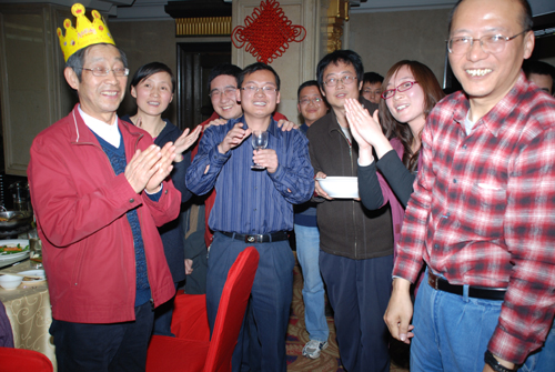 晚上,在天年阁饭店为肖老师举行了隆重的寿诞庆典活动。刘卫国研究员为庆典致辞、肖老师发表了人生感言,并对大家的到来表示衷心的感谢。在活动中,大家都献上自己的祝福,很多人还一展歌喉为肖老师庆寿。肖老师的历届学生及与会者都举杯祝愿肖老师福如东海,寿比南山。