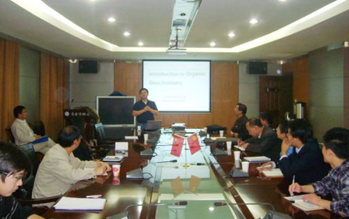 黄永松副教授做了“Introduction to Organic Geochemistry”,“Novel Organic Geochemical Methods for Reconstruction of Temperature and Precipitation from Loess Profiles”等数个学术报告。为大家介绍了有机地球化学的原理、应用、历史和前沿,并着重介绍了他的研究小组近来的研究成果和应用情况,以及利用沉积物中保存的微生物产生的生物标记化合物和陆地植物产生的叶蜡对古温度、古盐度、古降水和古CO2浓度进行定量恢复。Elizabeth Thomas博士做了题为“Recent Changes in a Remote Artic Lake are Unique with the Past 200,000 Years”的报告,介绍了在北极和格陵兰地区有关冰川湖泊古气候重建的研究。