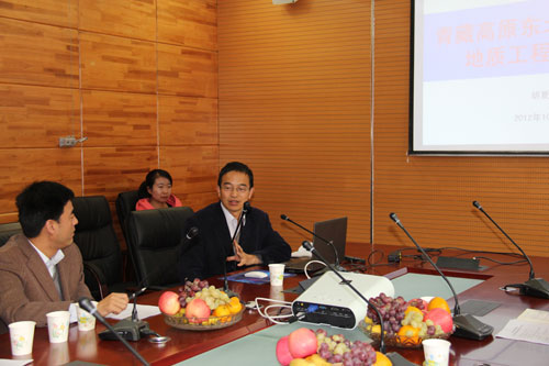 胡夏嵩教授首先做了“青藏高原东北部地区盐湖地质工程若干问题”的导师主题讲座,讲座主要介绍了关于盐湖地质工程这个新的学科领域的定义以及未来的发展方向。随后地学6位博士研究生及7位硕士研究生就自己所完成的工作及所取得的研究成果向各位老师和同学做了汇报,评委老师就各个同学的汇报中的问题及创新点进行了提问和讨论,期间各位参与学术讨论的同学也与汇报人员进行了交流与讨论。