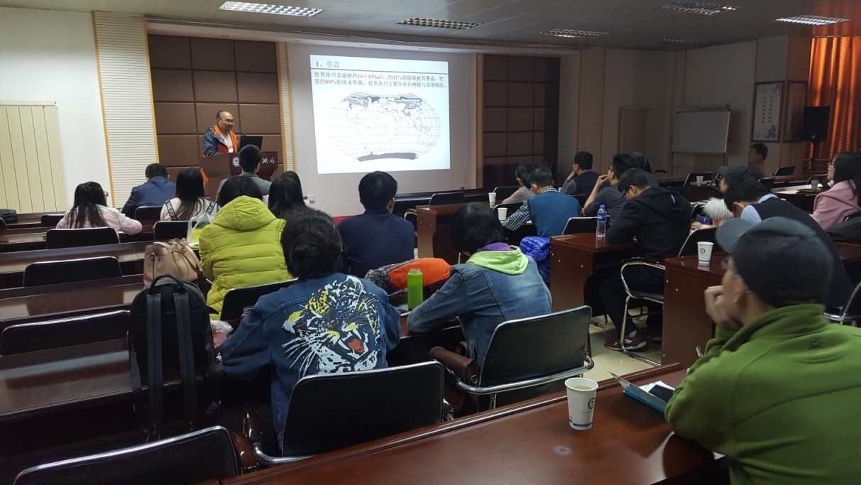 赵井东副研究员作了题为“现代冰川概况及天山第四纪冰川演化序列研究”的学术报告。赵井东先讲述了现代冰川地貌类型,回顾了中国冰川研究的历史和我国东部地区第四纪是否发育冰川存在的争论,最后讲述了他研究新疆天山中更新世以来冰川发育历史取得的研究成果。他认为天山至少在40万年以前就具备了发育冰川所需的各项条件,开始发育冰川。