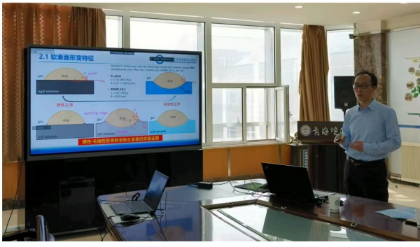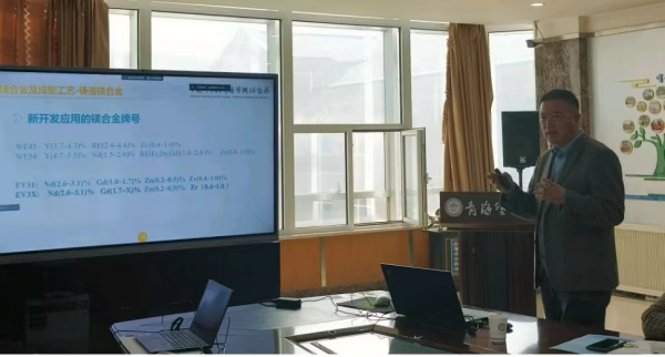 本次报告会邀请了青海盐湖资源化学实验室的赵彬钰和刘洪汇两位老师做学术交流。赵彬钰研究员以“固液界面微纳润湿特性研究”为报告题目,介绍了均匀硬表面、软表面和纳米结构表面的纳米润湿特性,通过解释简单界面物理化学和力学现象背后的基本原理指导盐湖资源分离过程微观机理的探索和工艺的开发。刘洪汇研究员结合之前工作经验开展题为“高性能镁合金材料在航空发动机和直升机减速关键部件中的应用”的报告,介绍了镁合金铸造工艺,强调高原低温和低氧环境有利于盐湖基高性能镁合金成形的开发与研究。
