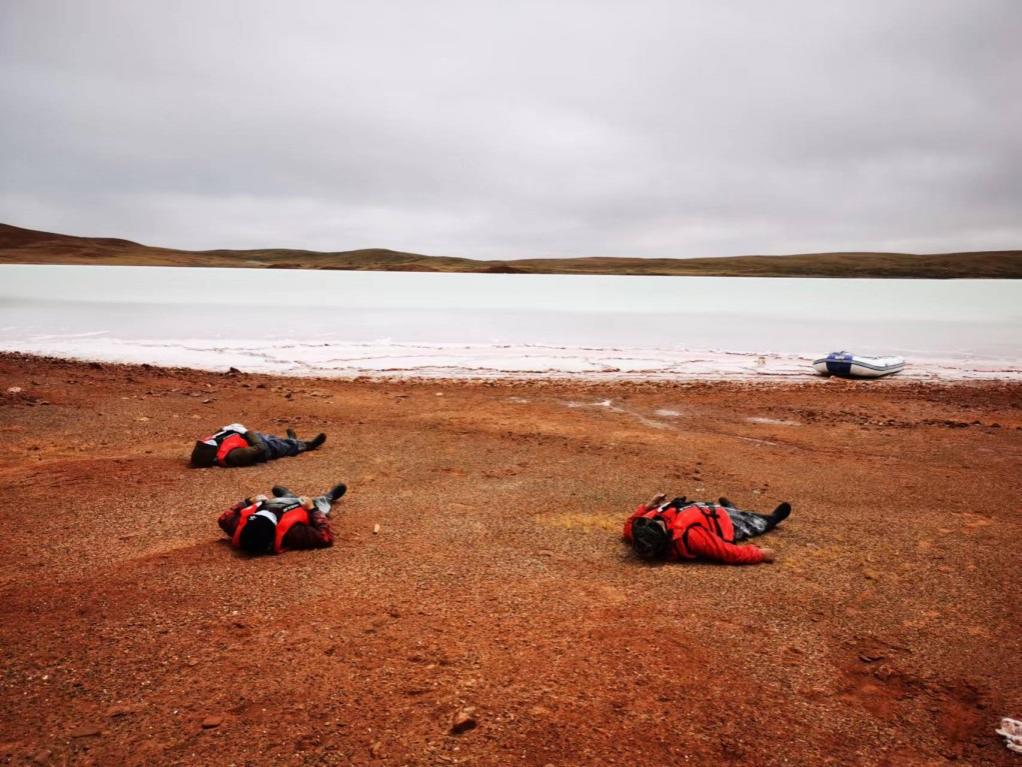 高海拔缺氧环境让人每走一步都感觉困难,而穿着雨裤在湖里拖船前进更是艰难无比。但困难没有吓倒大家,队员们按照既定线路和方案,几乎靠着步行采集了全部的卤水样品。当咬牙完成任务并把船拖到岸上后,几乎每个人都虚脱了,躺在地上一动也不想动。此刻,“躺平”成了最大的幸福。可工作还得继续,整理好样品,收拾好所有的行李,便立刻赶往下一个目的地——巴岭乡。此时天色已晚,道路也崎岖不平,到了深夜才赶到巴岭乡。好在乡政府提供了住宿的地方,才让我们有了睡个好觉的机会。虽然条件有限,但睡在屋子里总比住帐篷踏实一些。随后几天,大家一鼓作气,相继完成了其香错、昂达尔错、毕落错、鄂雅错、达尔沃错温错、朋彦错、北雷错等多个湖泊的考察工作,虽然仍会碰到各种麻烦困难,但整体上工作仍算顺利。这其中,我们见识到了高原上像针一样坚硬扎手的小草、总与车辆赛跑的成群结队的藏野驴藏羚羊、风浪下狂暴的朋彦错、仍被冰层覆盖的达尔沃错温错、阳光普照下平静的鄂雅错等高原特有的风光。在完成科考工作的同时,能有幸欣赏到壮美的高原风景,也算是对辛苦工作的嘉奖。苦与乐总是同行的,这也铸就了盐湖地质人敢于拼搏的乐观主义精神。这也许就是“盐湖精神”的一个诠释吧。