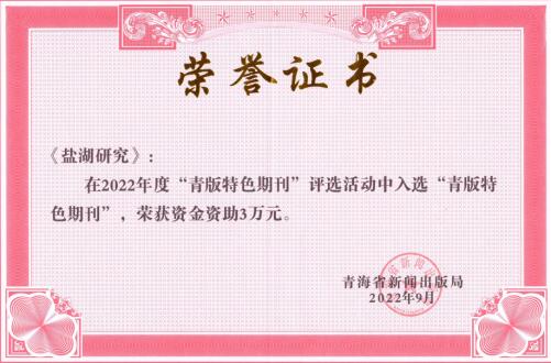 2022年9月,青海省新闻出版局开展“青版特色期刊”评选活动,青海盐湖所《盐湖研究》期刊积极申报,成功入选2022年度“青版特色期刊”,并荣获资金资助3万元。