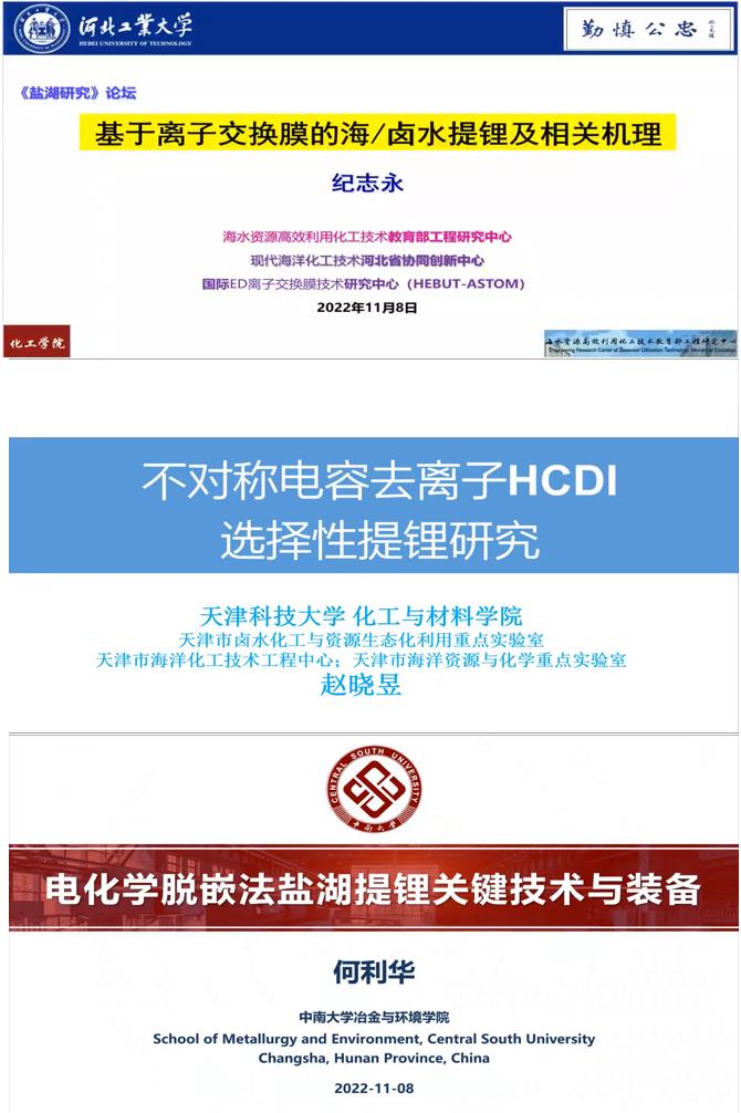 论坛围绕“盐湖卤水提锂”这一中心议题,进行了学术报告及广泛交流。论坛包括3个邀请报告,邀请河北工业大学纪志永教授、天津科技大学赵晓昱副研究员、中南大学何利华副教授分别围绕离子交换膜提锂、不对称电容去离子技术选择性提锂、电化学脱嵌法提锂等主题作了深度报告与交流。