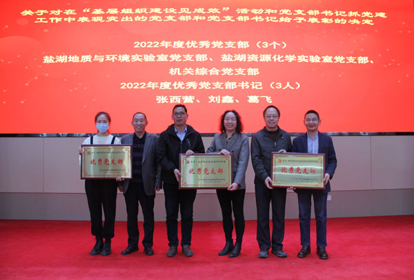 大会还表彰了2022年度优秀职工和先进党支部、优秀党支部书记。副所长王建萍宣读了《中国科学院青海盐湖所关于对2022年度优秀职工进行表彰的决定》,王永晏宣读了《中共中国科学院青海盐湖所委员会关于对在“基层组织建设见成效”活动和支部书记抓党建工作中表现突出的党支部和党支部书记给予表彰的决定》。所领导为丁秀萍等36位获得表彰的优秀职工颁发了证书,党委委员为获得表彰的党支部和党支部书记颁发奖牌和证书。