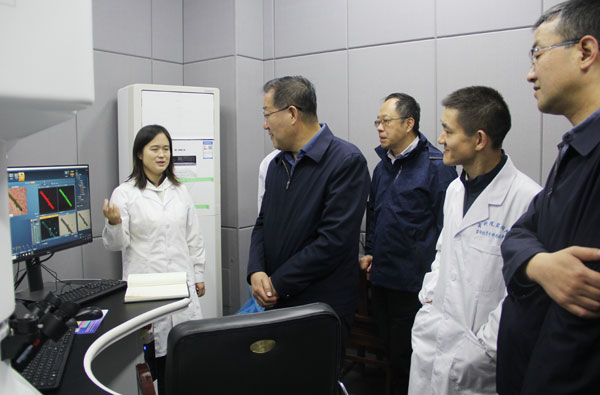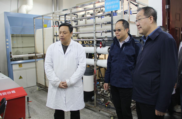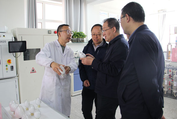 陈永祥一行参观了科技成果展厅、盐湖化学分析测试中心和实验室,详细了解了青海盐湖所历史沿革、科研平台及人才队伍建设情况,重点调研了盐湖锂资源分离提取及废旧锂电回收实验平台及研究进展。