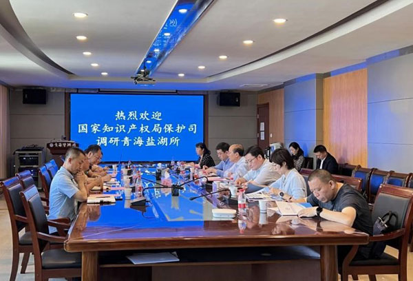 7月18日,国家知识产权局知识产权保护司一级巡视员毛金生一行到青海盐湖所调研知识产权工作情况,并开展座谈交流。青海省知识产权局局长赵海涛等陪同调研。