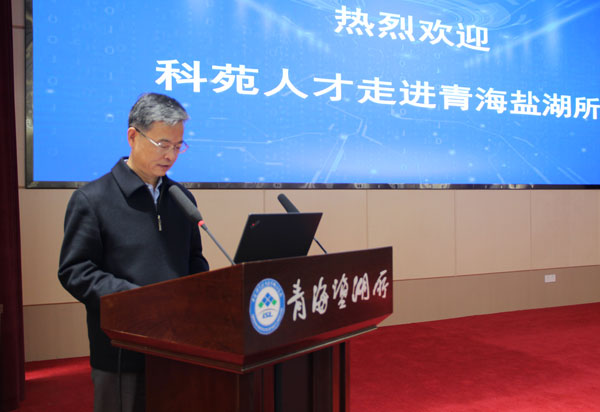 青海省委组织部副部长、省委人才办主任徐小兵在会上介绍了青海省对引进人才的支持政策和力度,并指出,“科苑人才走进青海盐湖所”活动,是贯彻落实落实习近平总书记重要指示精神的具体表现,是落实全省组织工作会议和省委人才工作会议的生动实践,也是盐湖科技工作者相互学习、相互交流的一个宝贵平台,欢迎广大青年科技工作者选择青海、热爱青海、奉献青海,充分发挥自身科研优势,积极参与盐湖科技事业,为青海打造世界级盐湖产业基地建设贡献智慧。