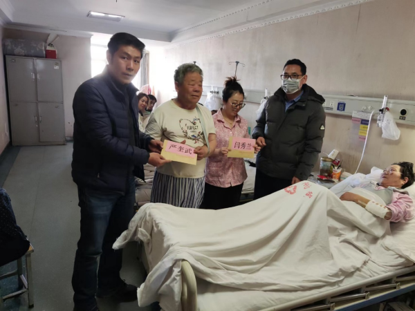 1月12日,慰问组一行再次前往医院看望慰问受伤的2名群众,并将全所职工及研究生捐赠的部分爱心款5000元转交他们,反复叮嘱他们有什么困难要及时提出来。村民闫秀兰眼含热泪,对青海盐湖所和驻村工作队的关怀深表感谢,她说:“青海盐湖所的关心和慰问给我带来了动力,也解决了家里的燃眉之急,谢谢你们。”