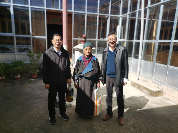 杨勇刚一行首先走访了2户结对帮扶脱贫户,详细了解他们在灾后重建、就业务工、家庭收入、子女入学、产业帮扶等方面的具体情况,认真倾听群众诉求,并为他们送去面、油等生活物资和青海盐湖所的关心问候。随后,驻村第一书记详细汇报了一年来工作队帮扶工作进展,以及重点围绕日扎村的灾后安置、搬迁重建等工作成绩。