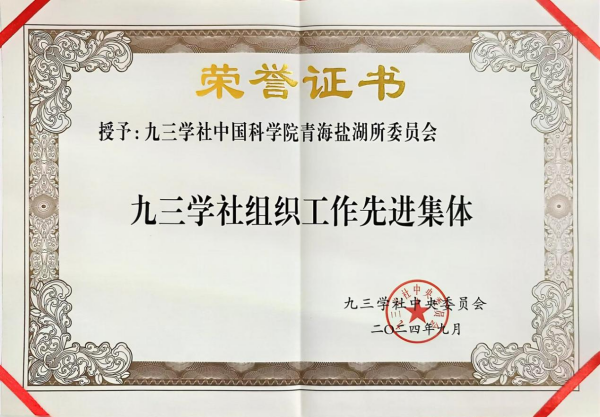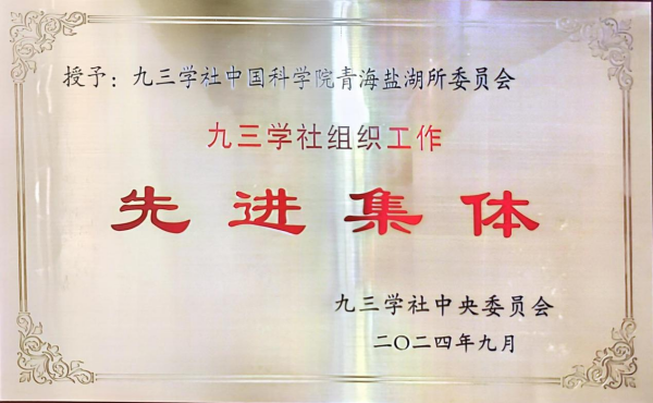 近期,经九三学社第十五届中央委员会第二十三、二十四次主席办公会议研究决定,九三学社青海盐湖所委员会荣获2023至2024年九三学社组织工作先进集体,也是青海省唯一入选该荣誉称号的集体组织。