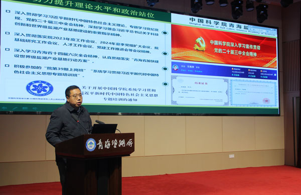 中国科学院兰州分院副院长、分党组成员赵培庆,兰州分院组织人事教育处相关工作人员,青海盐湖所领导班子成员及全所职工等220余人参加了会议。会议由青海盐湖所副所长郑诗礼(主持工作)主持。