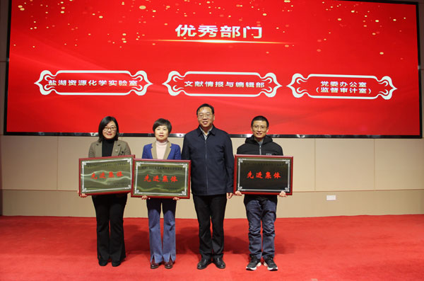 会议对2024年度先进集体和先进工作者进行了表彰。郑诗礼宣读了《中国科学院青海盐湖研究所关于表彰2024年度先进集体和先进个人的决定》,所领导为盐湖资源化学实验室、文献情报与编辑部和党委办公室(监督审计室)3个先进集体、王敏等51位先进工作者颁发了荣誉证书。郑诗礼强调,受到表彰的先进集体和先进个人要珍惜荣誉、谦虚谨慎、戒骄戒躁,进一步加强学习,努力工作,发挥模范带头作用、再创佳绩、再立新功。同时,希望全所职工以先进集体和先进个人为榜样,真抓实干锐意进取,不断为盐湖科技事业作出更大贡献。