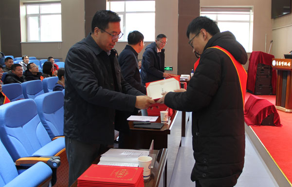 所领导为先进工作者颁发证书