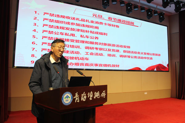党委副书记、纪委书记杨勇刚按照上级纪检组织要求,给全所职工作廉政提醒,向全体干部职工传达了《关于2025年元旦春节期间持续深化落实中央八项规定精神的通知》精神,并结合近期各级纪检监察机关发布的违反中央八项规定精神典型案例,提醒全体职工节日期间务必坚守节点,清廉过节,共同营造青海盐湖所风清气正、正气充盈的政治生态。