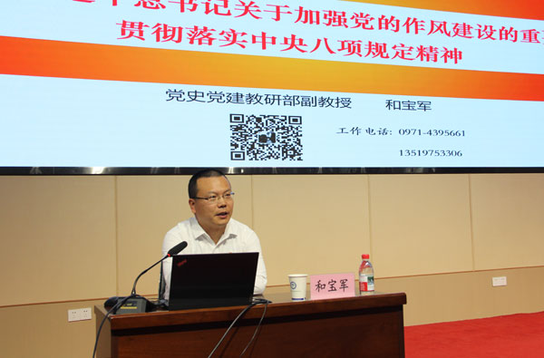 会议首先邀请青海省委党校和宝军副教授作题为《深入学习习近平总书记关于加强党的作风建设的重要论述 贯彻落实中央八项规定精神》的专题党课报告。报告强调要充分认识深入贯彻中央八项规定精神学习教育的重大意义,深刻领悟把握中央八项规定精神的核心要义与实践要求,扎实推进深入贯彻中央八项规定精神学习教育走深、走实。报告主题鲜明,重点突出,对全所党员干部深入贯彻落实中央八项规定精神具有重要的指导意义。