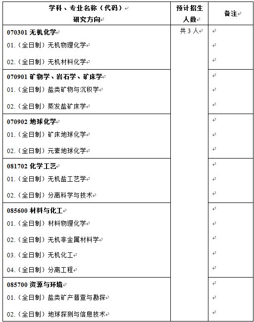 2021年中国科学院青海盐湖研究所推免硕士研究生招生专业目录 :